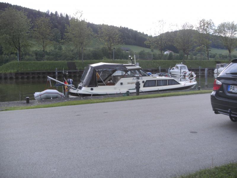 Schlögen hat, wie auch andere gute Yachthäfen, ausreichend breite Stege um einen Hund angeleint über den Steg an Land zu führen, damit das arme Tier dort seine Notdurft verrichten kann. Dazu braucht man kein Schlauchboot! Es hat sich allerdings in manchen Häfen eingebürgert, dass Hunde, und selten die kleinsten, ihren Platz auf dem Steg zugewiesen bekommen, meist mit Decke, ohne dass man mit seiner Grundfurcht vor Hunden sich daran vorbei traut. Jeder, der schon von einem Hund gebissen wurde (ich zweimal), kennt dieses Gefühl. Wenn der Hund schon Sonne auf dem Steg genießen soll, dann bitte auch dort so angeleint, dass man sich noch ungefährdet daran vorbei bewegen kann. "Der tut nichts" ist keine Ersatzlösung dafür. Bei den schmalen Wackelstegen in Kapfelberg sehe ich allerdings ein Problem.