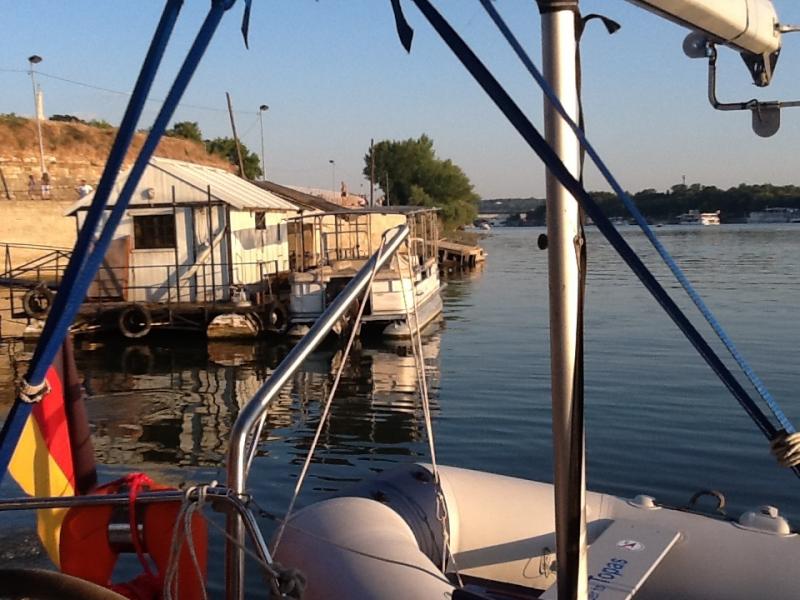 Wir werden die Augen offen halten.....! Wir sind heute in Belgrad geblieben. Es ist heiß - sehr heiß .... - 35 Grad und gefühlt noch heißer ! Im Cockpit steht die Badebütt mit Donauwasser - das wird alle 20 Minuten erneuert! So läßt es sich aushalten :301: Unser Anleger ist am Fischrestaurant Vodenica in der Save-Mündung - 22 Euro die Nacht :mad: - wir werden das mal nachverhandeln .... Dafür liegen wir aber direkt unterhalb der Festung. 24 Stunden Beschallung von den umliegenden Disco-Booten inclusive.... Wenn man das Umfeld etwas ausblendet, ist es eigentlich ganz schön hier und die Fischsuppe ist wirklich : (daumen)(daumen). Anhang 22355 |