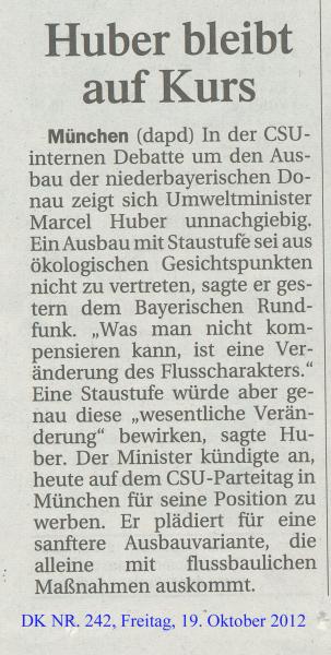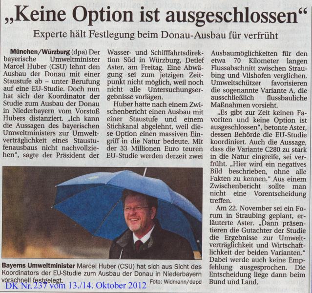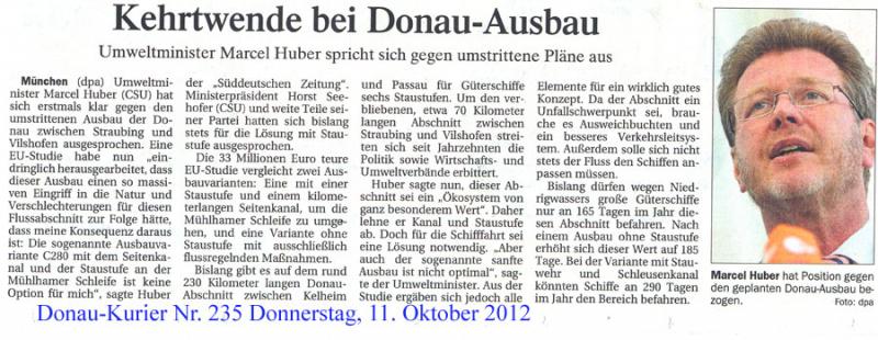 Die Geschichte bleibt nicht stehen: Umweltminister Marcel Huber nimmt Abstand zum geplanten Donau-Ausbau C280! (daumen)