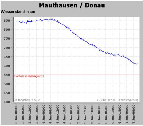 Hier mal der direkte Link zum Pegel Mauthausen (km 2111), vielleicht wird der etwas häufiger aktualisiert als der von Elwis: