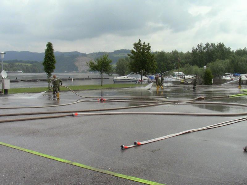 Wir fanden das schon beeindruckend, wie hier Einer dem Anderen geholfen hat und speziell auch, wie die Feuerwehr die Unmengen von Schlamm beseitigt hat. Anhang 22090 Die Reinigung des riesigen Parkplatzes hat gerade einmal 2 Stunden gedauert, mit 5 C-Rohren gleichzeitig Anhang 22089 Selbst die Zugänge zu den Steganlagen wurden perfekt gereinigt - und die Jungens hatten auch noch Spaß daran... Anhang 22087 wir hatten schon fragen wollen, ob sie nicht auch unser Boot mal abspritzen könnten :) Da bleibt dann jetzt nur die Frage: was ist aus der Steganlage der Angler gewordenConfus - nur ein Haufen Schrott und das gelbe Boot lag irgendwo kieloben darunter **weinen**- und keinen hat's interessiert :mad: Anhang 22088 |
