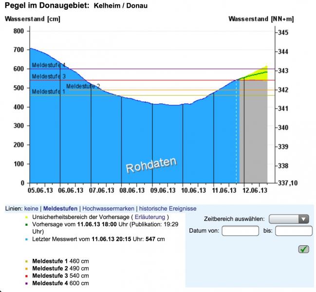 Da bin ich mal gespannt wie lange das geht. Der Pegel in Kelheim ist schon wieder bei Meldestufe 3