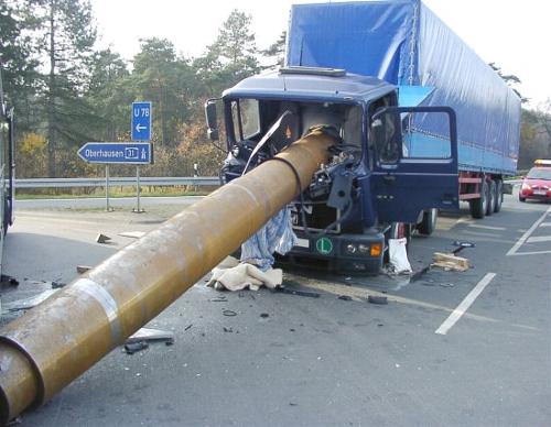ich war mal Beifahrer bei nem Autotransport mit Trailer...das Fahrzeug war bestimmt gut gesichert...da kam im Gegenverkehr einer ins schleuedern und der Schorschi hat den Stachel reingehauen...der Pkw lag anschliesend auf dem Kofferraum vom Zugfahrzeug:banghead::banghead::banghead: |