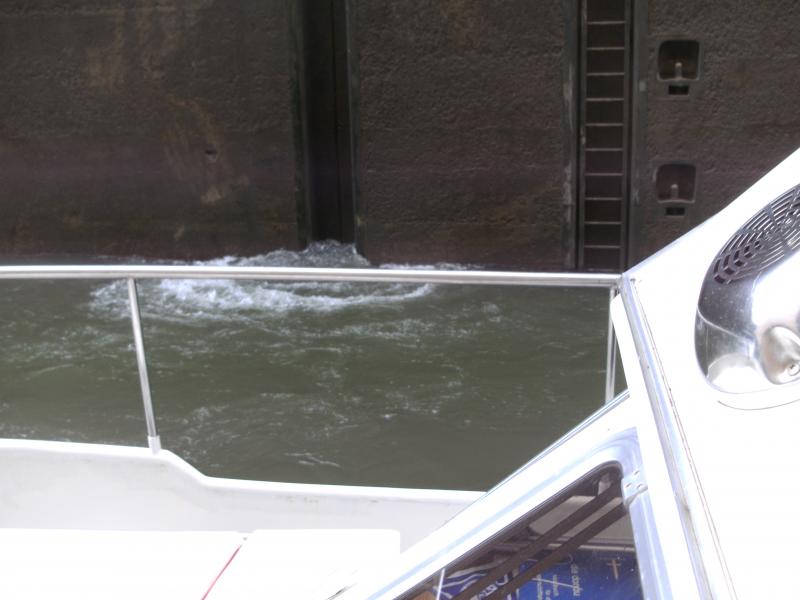 Da wird das Wasser zwischen Schleusenwand und Bordwand rein gepreßt, was recht nette Kräfte entstehen läßt und dich von der Wand abdrücken will. Die Fallhöhen gehen bis fast 25 m bei drei zu Berg Schleusen. Das ist recht beeindruckend aber eigentlich egal. Hier die erste zu Tal mit 17m Ab Eibach hast du Schwimmpoller was die Sache recht erleichtert, davon sind 4 zu Berg. Aber verlaß dich nicht drauf, mir ist auch schon mal passiert, daß welche zur Wartung ausgebaut sind. Wenn nu dann oben bist, wirst du durch ein Schild darauf hingewiesen daß da keine sind. ![]() Alles nichts zu fürchten, aber ein zweites paar Hände ist doch recht nützlich. Zitat: