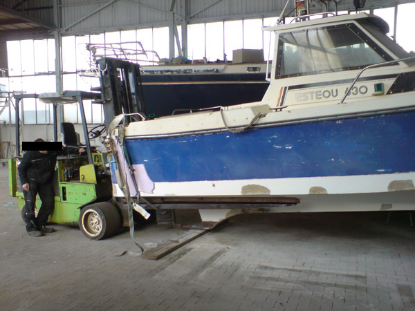 Aber wir hatten gerade keinen Lagerbock frei und das Boot mußte in ne andere Halle... ![]() ![]() |