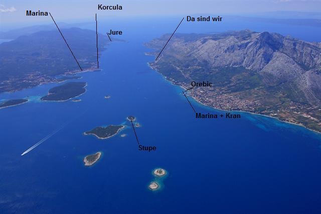 Hallo Mirsad909, wir sind vom 31.07. - 21.08.2010 in Orebic. Hier noch ein schönes Bild. Rechts ist Orebic, links ist Korcula. Wenn du auf dem Boot bleiben willst, bietet sich die Marina auf Korcula, oder auch in Orebic an. Dort gibt es Wasser und Strom. Ich wüßte auch einen schönen Platz bei einer Konoba beim Jure. Da gibt es allerdings keinen Strom, aber eine Dusche und Sanitär an Land. Die Konoba ist super Spitzenklasse. Dieser Link ist auch ganz nett. http://www.beepworld.de/members75/apartmentorebic/ Gruß Peter |