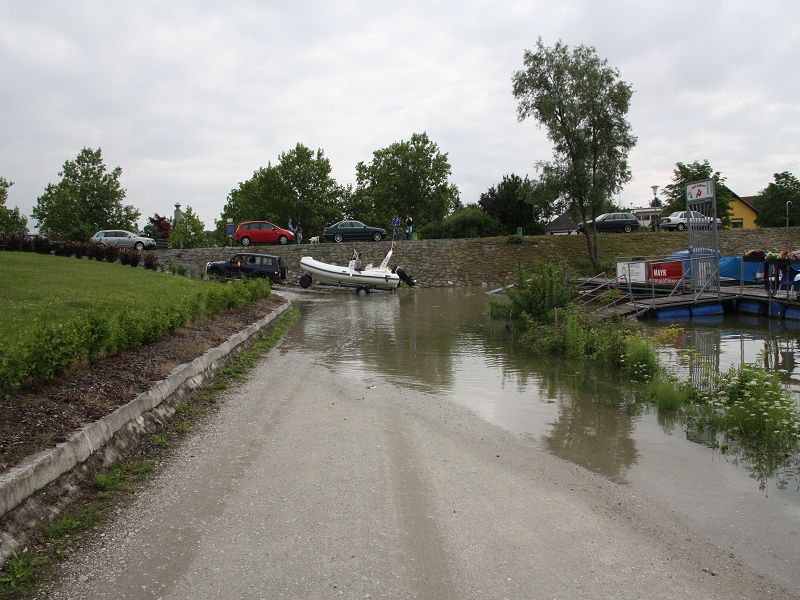 Am vergangenen langen Wochenende fand ´unser alljährliches´ Schlauchboottreffen in Au/Donau in Österreich statt. Zuerst kam das Wasser in Form von Regen von oben nach unten, dann jedoch stieg die Donau über Nacht unaufhaltsam nach oben, so dass an eine Ausfahrt nicht zu denken war. Die Schifffahrt wurde offiziell eingestellt. Und dann kam super schönes Wetter, aber auch das Treibholz und es war wieder nichts mit einer Ausfahrt. Am Samstag nachmittag hatte sich die Lage soweit entspannt, dass einige eine erste Fahrt wagten. Es wurde immer besser, so dass am späten nachmittag fast alle Boote den Hafen verlassen haben. Jedoch beschränkten sich die Fahrten, da Sportboote nicht geschleust wurden. Die Berufsschiffahrt und das ´Treibholz´ hatten noch vorrang. Aber alles in allem hatten wir eine Menge Spaß und gute Laune. Insgesamt hatten sich 18 Boote und fast 70 Personen eingefunden. hier noch ein paar Impressionen: Viele Grüße Wolfgang |
