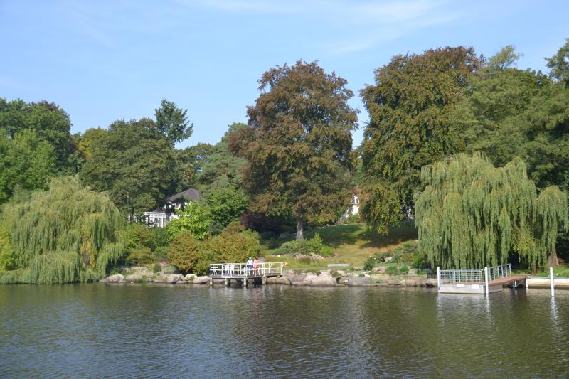 ![]() Nun kamen wir auch schon an die Glienicker Brücke. Noch heute sieht man, dass sie zur Hälfte zum "Westen", zur Hälfte zum "Osten" gehört (im Kalten Krieg wurden bekanntlich auf dieser Brücke Agenten ausgetauscht): der Grünton des Anstrichs ändert sich an der Brückenmitte! Während die meisten unter der Brücke durch zum (Großen) Wannsee fahren dürften (so war auch unsere Tour-Empfehlung), wählten wir einen anderen Weg: Vorbei an der Glienicker Brücke, die Glienicker Lake entlang über Griebnitzsee, Stölpchensee und dem Kleinen Wannsee in den Großen Wannsee. Diese Strecke ist sehr, sehr idyllisch. Die Geschwindigkeit ist auf 5 km/h begrenzt. Streckenweise gilt eine zeitlich wechselnde Einbahnregelung für Fahrzeuge über 2 Meter Breite. An manchen Brückendurchfahrten gilt Begegnungsverbot. (Blöd bei so komischen Bootsformen, wo man selbst durchs Fernglas nicht erkennt, ob es entgegenkommt oder vorausfährt; einmal mussten wir Rückwärtsschub geben und ein Wendemanöver fahren, um die Begegnung zu vermeiden ). Für Urlauber sind die Beschränkungen aber nicht wirklich eine Abschreckung.Die Bilder zeigen das Jagdschloss Glienicke, den Kanal vom Griebnitzsee zum Stölpchensee, und die Ausfahrt zum Stölpchensee. Im Hotel Forsthaus miete ich mich gern ein wenn ich in Berlin bin. Dort wohnt man so ruhig! Einmal habe ich mein Zimmer betreten und dachte, hier ist es so still, da kann ich ruhig für die Nacht das Fenster aufmachen. Ich wollte es gerade öffnen, doch es *war* bereits auf! Ein anderes Mal verschlief ich beinahe meinen Termin. Ich wurde erst vom Geräusch des Eintauchens eines Paddels eines vorbeifahrenden Kanus geweckt, um halb neun! Unbedingt den Wecker stellen, wenn man im Hotel Forsthaus wohnt!Geändert von berater (28.09.2014 um 12:31 Uhr). Grund: Tippfehler |
