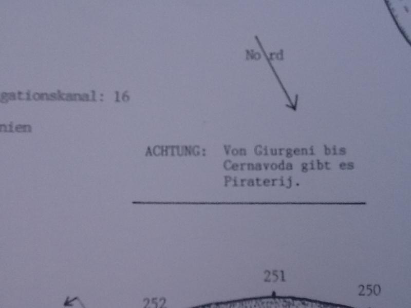 Roma und Sinti Stadt, wunderschön vom Wasser aus. Polizeisteiger ging nicht, aber bei den Fischern im Hafen wurden wir sehr freundlich aufgenommen. Waren auch größere Boote im Hafen, haben uns reingepuzzelt. Bei uns würde man sagen Abwrackplatz oder schon einen Schritt weiter. Große Hunderudel am Ufer. Wurden von allen Seiten gewarnt vor Klau. Auf mehreren Booten lief das Radio die ganze Nacht (zum Glück mit dem gleichen Sender) und die Beleuchtung blieb an. Einschlafen mit Musik geht ja, aber aufwachen mit Zigeunermusik ist nicht gut. Wollten das Boot nicht alleine lassen, waren also nicht im Ort. Zur Krönung des Ganzen hat mir Rainer dann noch den Hinweis in der Karte gezeigt, dass es zwischen unserem Abzweig km 240 und Cernavoda noch Piraterie gibt.... Kein gutes Vorzeichen für eine gute Nacht.